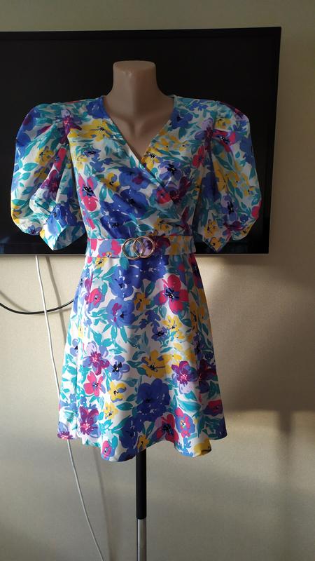 Яркое платье с рукавом-фонариком.Очень эффектное.Пог-49,Пот-37,длина-83.Без нюансов.