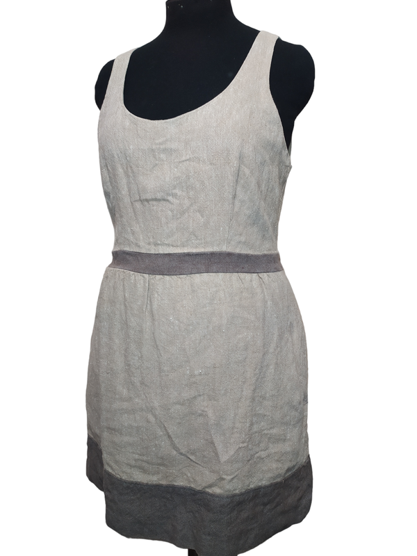 Платье из плотного 100% льна, оно хлопковой подкладке. Размер UK14.