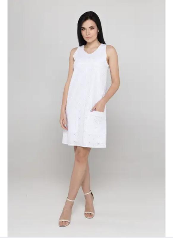 У створенні романтичного літнього образу сарафана з прошвой немає рівних. Правильне настрій задає крій і фактура матеріалу. Виріб доповнено двома великими накладними кишенями і невеликий виріз на спинці. Основна тканина: прошва