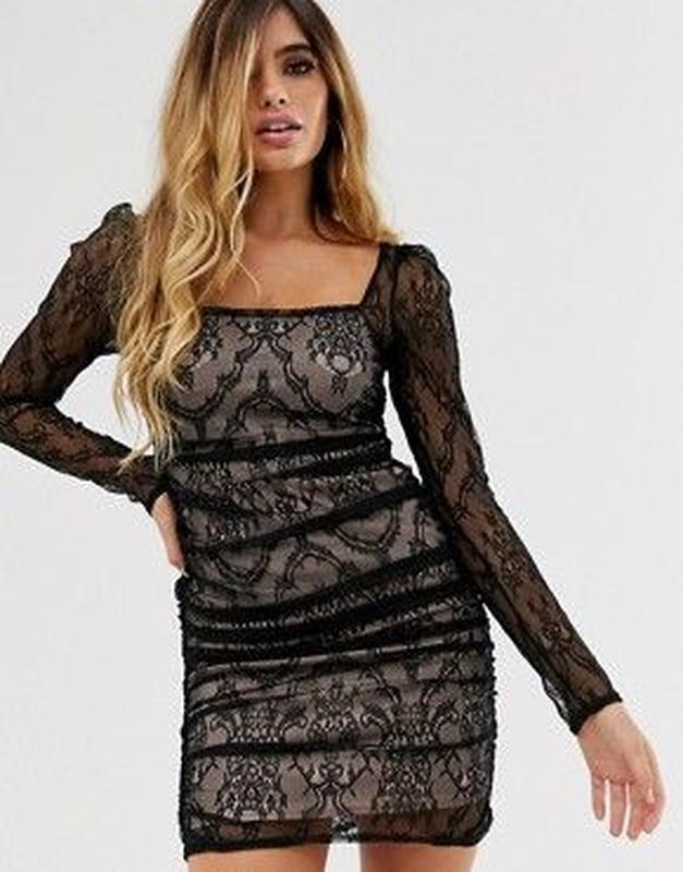 Мини-платье с кружевом и рюшами asos design