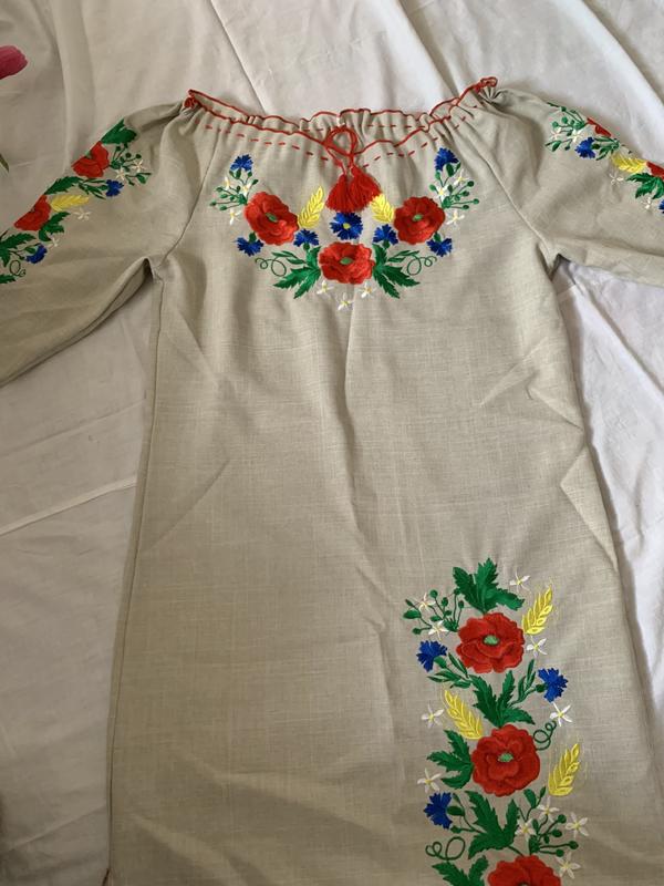 Невероятное красивое вышитое платье! Платье в идеальном состоянии! Длина 97 см Полуобхват талии 45 см Подмышками 44 Рукав от подмышки вниз 28 Размер С.