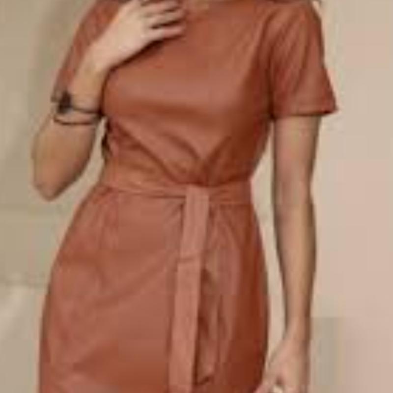 новое платье из кожзаменителя.темная пудра. пояс идет в комплекте. грудь полуобхват -51 бедра полуобхват 49 длина изделия -87 рукав идет спущенный, от горловины до конца рукава 27 см.