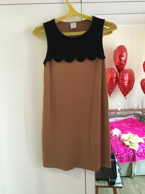 Бежево-чёрное немного стрейчевое платье прямого кроя.