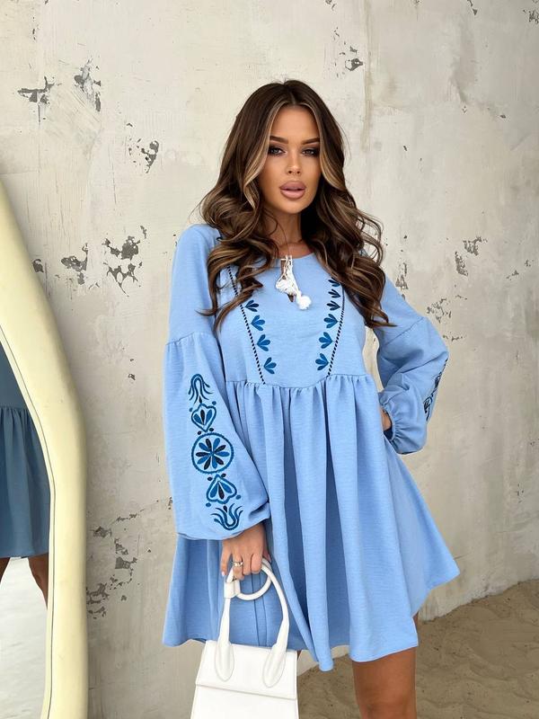 🔝СУКНЯ ⠀ 🔘Тканина: креп + вишивка 🔘Размер: S-М (42-44), L-XL (46-48) 🔘Цвет: синий, голубой молочный 📏 Замеры на фото 🚚 Отправка товара: ПН., СР., СУБ.