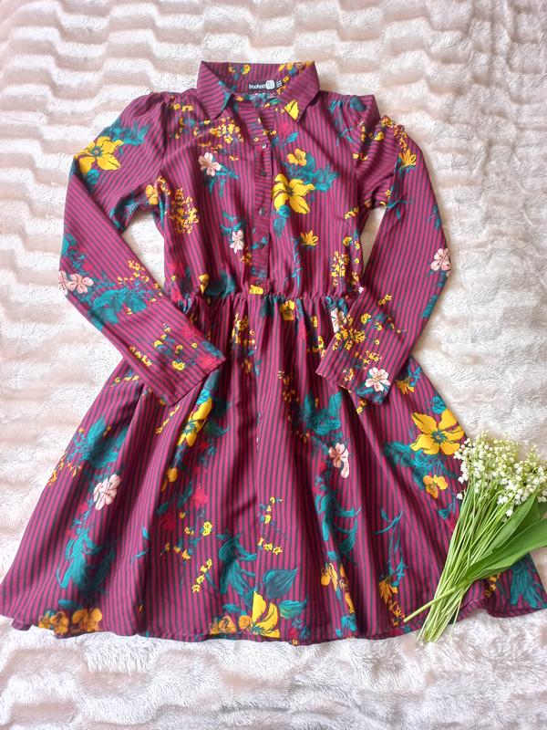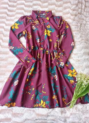 Платье цвета марсала в яркий цветочный принт. Спереди застегивается на пуговицы до линии талии. Талия на резинке. Состояние новой вещи ( с биркой ) Указан размер UK12 . ПОП-38, ПОГ-50, ПОТ-39-52 (резинка), ПОБ – свободно, рукав – 66 (легко можно подкатить), длина – 92. Заходите, пожалуйста, на мою страницу, где вы найдете много качественных и брендовых вещей за умеренными ценами. Подписывайтесь на постоянные обновления. Буду всегда рада вас видеть и познакомиться поближе💛💙🌸🌸🌸🌸🌸🌸