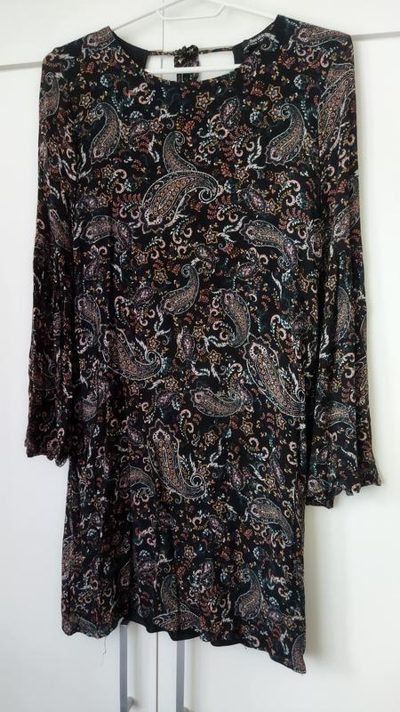 Очень красивое платье из приятного мягкого материала. Легкая, красиво ложится на теле. На спине очень красивый вырез на завязке. Фото на мне способно сбросить в личные сообщения. Длина платья 71 см, длина рукава 57 от плеча, рукав чуточку длиннее 3/4 На подкладке