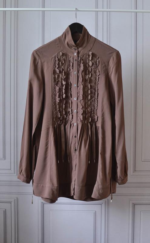 Коричневая туника/платье рубашка с затяжками по бокам от High размер 10/36,идет на М состояние идеальное состав на фото