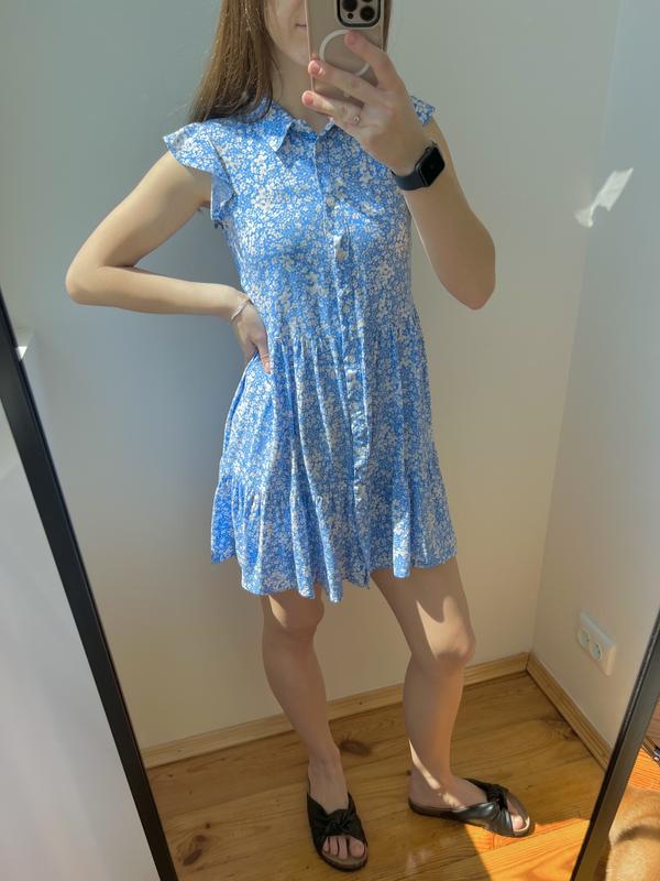 Летнее голубое платье на пуговицах Размер S Длина платья 80 см ПОГ 42 см, ПоТ 40 см Подойдет на грудь 82-86 см, талию 62-66 см и бедра 90-94 см Стан идеален, без дефектов