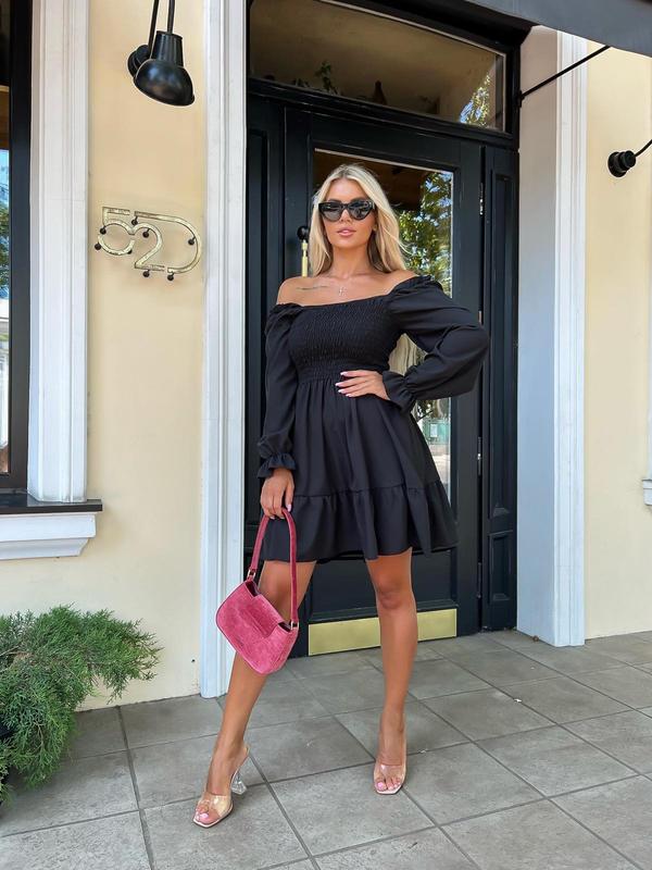 Модель 5322стаф Женское платье Размерный ряд S,M,L,XL Материал софт , приятный к телу Цвета чёрный, голубой, беж, фисташка, малина Модель классная, лёгкая, идеально подойдёт под любую обувь, также стильная в этом году простроченная резинка является изюминкой изделия Супер качество