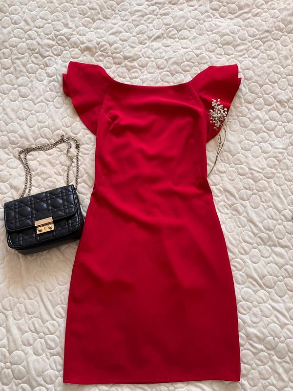 Очень красивое красное платье приталенное, с чуточку откритой спинкой который украшает бантик на завязке, можно опустить плечики. Размер S Длина 82 см Сбоку замок вшит