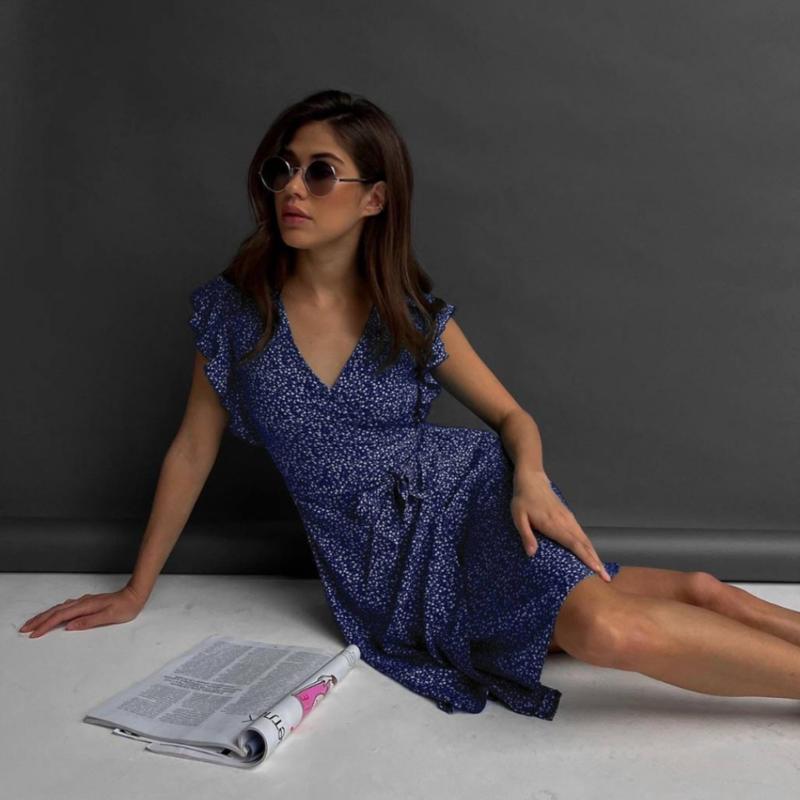 ❗️РОЗПРОДАЖ❗️ Остаток товара: -синий 9С Сукня ▪Код товару: 484 ▪новая цена 350 грн🔥 ▪Тканина: софт ▪Размер: S-М; М-L ▪Цвета: синий 📌Платье на запах. Приталенного кроя. код1805(ист)