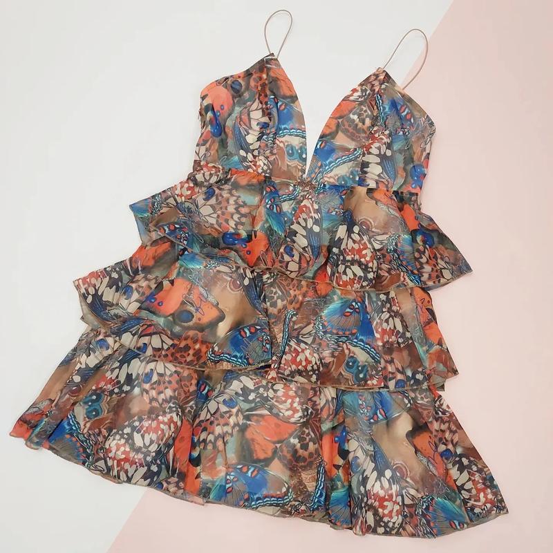 👑PrettyLittleThing👑 Невероятно легкое летнее платье с открытой спиной и глубоким декольте, яркий принт, сбоку имеет скрытый замок❤ Размер L 📏 полуобхват груди 43-44см полуобхват грудной клетки под грудью 40см