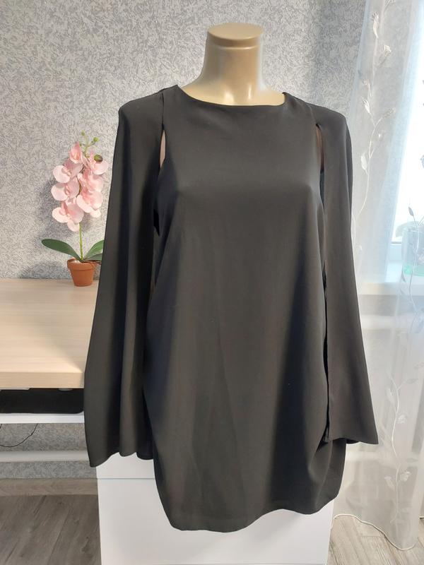 Женское черное мини платье кейп New Look, размером 12,40, из полиэстра. Новая с этикеткой, выполненная как будто сверху накидка, длиной 85см, остальные замеры на фото. Не просвечивается.