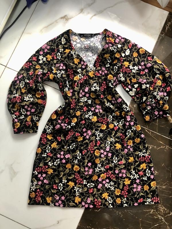 Красивое цветочное платье, рукава пышные состояние новой, очень яркое