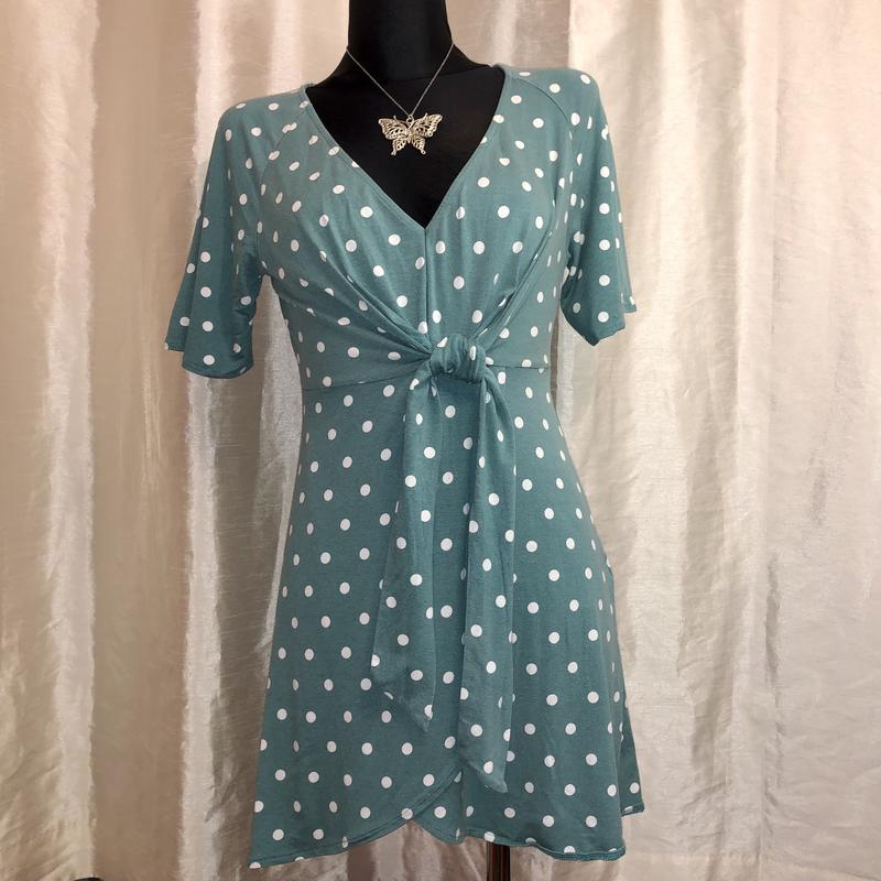 эластичное платье в горошек с завязкой на талии бренд Pull&Bear размер М пог 38см пот 33см длина рукава 33см длина 77см