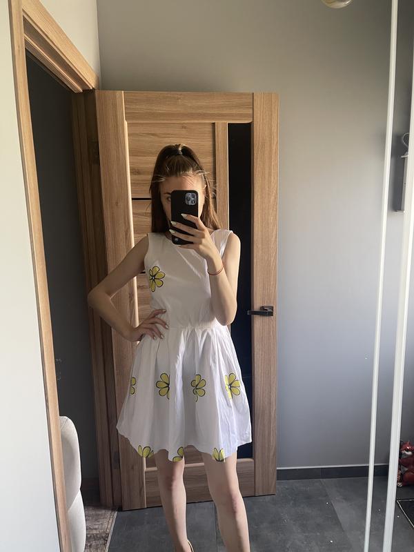 Белое летнее платье, с желтыми ромашками, очень удобное и приятное