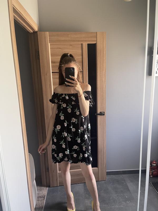 Легкое платье в цветы, с открытыми плечами (можно не открывать плечи ) очень приятная к телу, свободного кроя