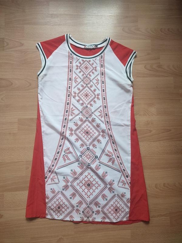 Красивое платье с имитацией вышивки Состояние отличное ( одета несколько раз) Имеет свободный крой Длина 85 см ПОГ 47 см