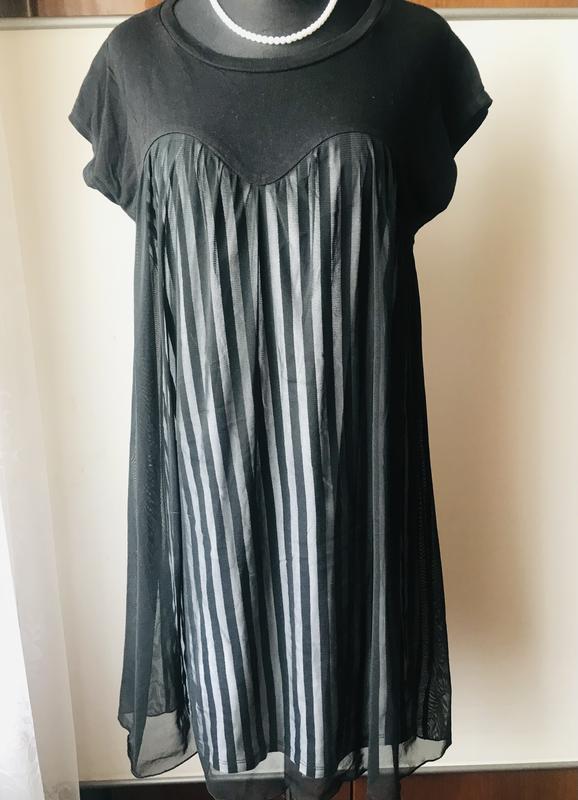 Интересное платье японского дизайнера Маг, оригинальный фасон - от отрезное части по верху прозрачная ткань, полиэстер,циатный принт,натуральное, приятное на ощупь- 51% вискоза 49% коттон,фасон и состояние максимально показано на фото, указательный размер L, за счет фасона пойдет и на другие,ориентируйтесь по замерам. Замеры: долж от плеча до низа-84,плечи спущенные,ш плеча-16, ш плеч-52, по проймам-18,пог под проймами-45,пот-45, по бедер-47, замеры выполнены в спокойном состоянии, если какой-то важный перемер, оборот не имеет, ответчатым на все вопросы, отправлю удобной вам по почте после оплаты на карту Приват или Моно, читайте в разделе « обо мне, безопасная оплата и накладной платей только новая почта или Микспресс