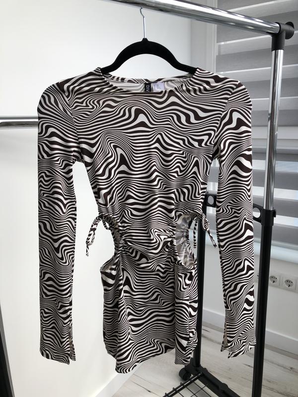 Платье от H&M Размер XXS Интересный принт С маленькими разрезами на рукавах и разрезами по бокам Состояние как новый!