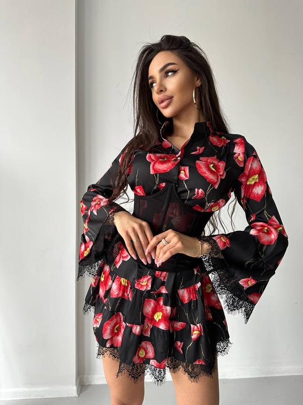 Сукня міні виконана з легкого матеріалу – софт . Модель з укороченим рукавом, прикрашена мереживом по краю рукава та низу виробу. У комплект входить корсет, який допоможе підкреслити талію. Створіть образ для виходу на вечір, доповнивши його високими чоботами або класичними човниками. Матеріал сукні: софт, мереживо. Матеріал корсету: сітка Ціна сукні: 860 грн Ціна корсету: 680 грн