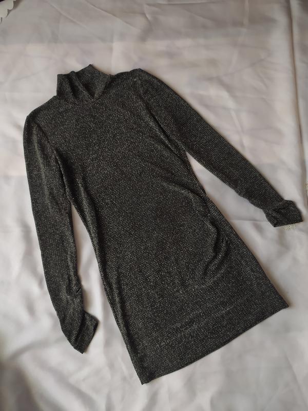 Блестящее платье с длинным рукавом. Тонка. Застегивается сбоку на молнию. Материал: 60% нейлон, 35% металлик, 5% эластан. Подойдет на XS-S. Замеры:'ширина в плечах 33см, пог 40см, пот 34см, пос 39см, длина 75см.