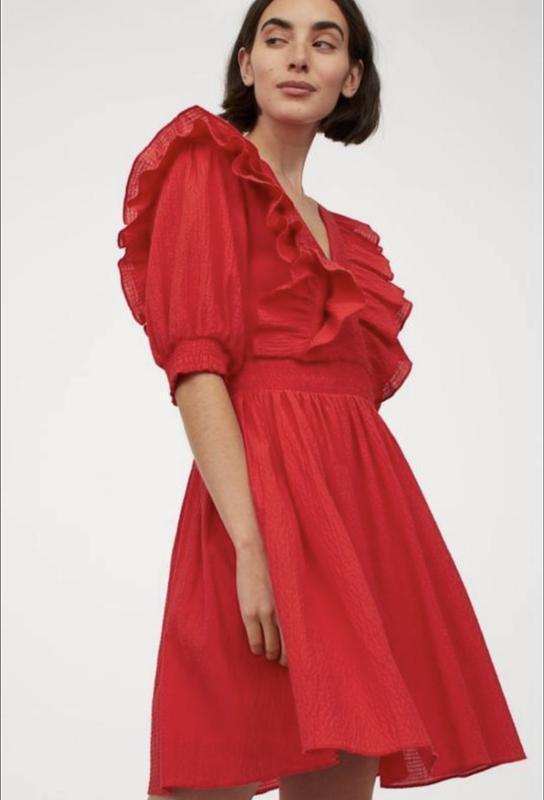 Абсолютно новое, ни разу не надевалось, ярлыка нет. Заказывалось с оф.сайта дороже. Короткое платье из воздушной текстурированной ткани из смесового хлопка с глубоким V-образным вырезом спереди и сзади и воланами спереди, которые продолжаются вниз по спине. Короткие объемные рукава-буфы с присборенными краями. Потайная застежка на крючки на вырезе, потайная молния с одной стороны, присборенный шов на талии и расклешенная юбка. Замеры: Длина от плеча 92 (топ 38,5 + пояс 4,5) Рукав 30,5/23,5 ПОГ 44 ПОТ 36 ПОБ 51 Юбка на натуральной подкладке.