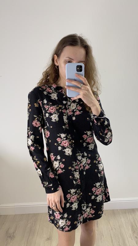 Нежное платье в цветочный принт от h&m. 100% вискоза. Идет без пояса, но есть место под него. Размер хс. Состояние хороший, не насыщенный черный цвет