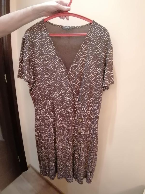 Стильное платье в горох в коричневых оттенках от известного британского бренда Next. Отличное качество ткани 96% вискозы. Ткань мягкая и приятная к телу. Классический крой платья с запахом, поэтому спереди двойная ткань. Запах зафиксировано на декоративные пуговицы. Обратите внимание пуговицы не расстегиваются и носят исключительно декоративную функцию. Лиф также выполнен с запахом, что делает акцент на груди. У платья короткие рукава футболочного типа. Сама платья короткая, но такая длина вполне уместна в офисе. Хорошо садится по фигуре 16 UK или 44 EU размер. Красиво сочетается с белыми кроссовками или кедами, туфлями "Меры Джейн" или балетками. Состояние отличное, без дефектов Размеры: плечи 42 см длина общая 106 см: до талии - 46 см после талии - 60 см обхват груди 57 (114) см длина рукава 25 см ширина рукава 15 см Доставка Укр-почтой или Новой почтой. Предварительная оплата на карточку Монобанка Обмен и возврат вещей не предусмотрен