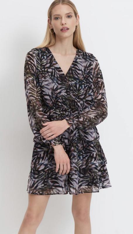 длинные рукава с манжетами с оборками на резинке👗 V-образный вырез и запах спереди✔️ длина выше колена✔️ Размер: S/36 Состав головной ткани: 100% ПОЛИЕСТЕР Состав_подкладка ткань_1: 100% ПОЛИЕСТЕР