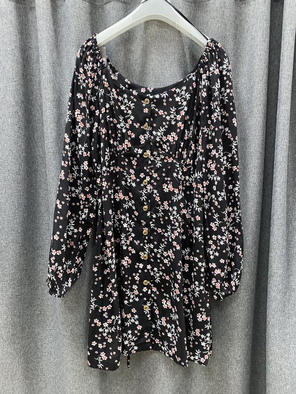 Платье на пуговицах Длина по спинке 68 см длина от плеча 85 см Рукав от шеи 65 см, от подмышки 42 см Пог 52 см Пот 46 см, сзади есть завязки, чтобы уменьшить талию Поб 57