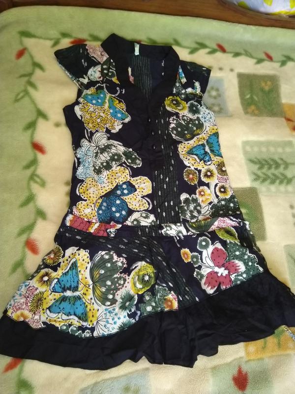 Очень красивое фирменное орегинальное платье/туника, длина -80см, полу обхват груди -44см, полу обхват талии занижен -45см, очень красиво смотрится, внимательно сверьте свои размеры, очень легкая приемная на ощупь.