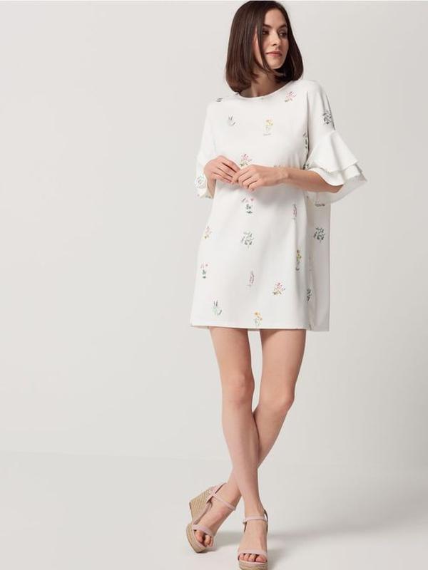 Изящное платье в красивый меленький принт цветов. Ткань плотная, тянется. Было одето один раз. ПОГ 58см Длина 82см