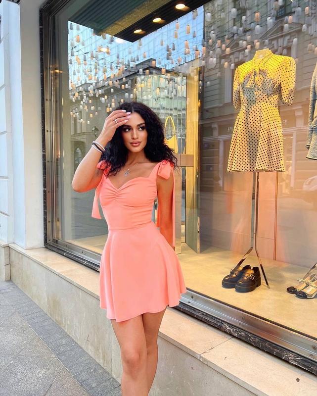 ▫Ткань - американский креп ▫Размеры - 42-44 и 44-46 ▫Цвета - малина, голубой и персик ▫Это любовь с первого взгляда😍 Нежное платье с бантами-завязками в длине мини🍸 Сочные и яркие летние цвета в тандеме с легкой тканью подойдут для самых жарких дней 💛