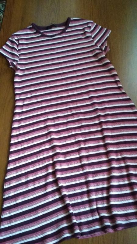 Полоскатое трикотажное платье в рубчик с люрексовой нитью. Пог-37 Плечи - 33,5 Длина по спине - 77. Очень хорошо тянется. Указано на 13-14р., но ориентируйтесь по замерам. Без дефектов. Без торгу. Отправка НП, УП после оплаты на карточку.