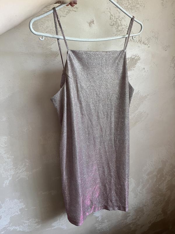 Очень красивое платье с переливом, люрексовое, но держится плотно) Ну очень нежное❤️ Размер Л Открытая спинка сверху