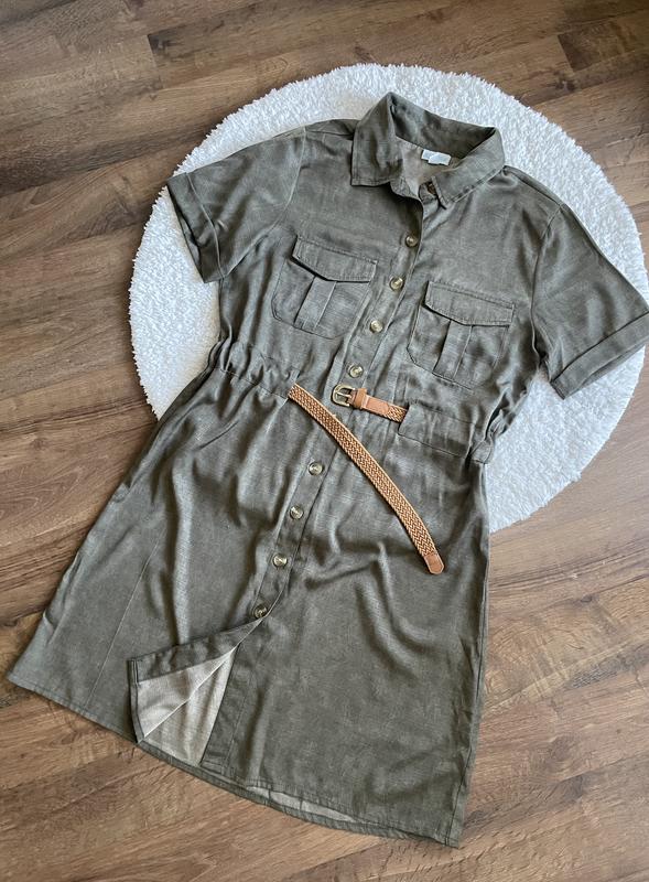 Платье в стиле сафари 🩶BLUE VANILLA. Размер S/M. Плечи 40, ПОг 48, длина 91. Поясок заменен на другой. 🌿смотрите и другие Мои объявления и подписитесь
