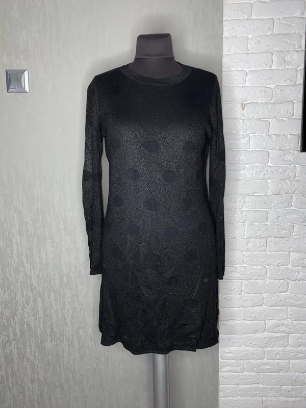 Теплое трикотажное платье с люрексом плата в горох Daphnea, M/L. Длина 84см, ПОГ 52-62сс, Поб 53-65см, рукав 60см