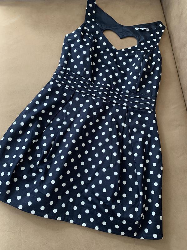 Платьице в отличном состоянии. Цвет темно-синий, полностью на подкладке. Состав указан на фото. Длина 80, ширина подмышками 44, пот 39. Сзади застёгивается на молнию.