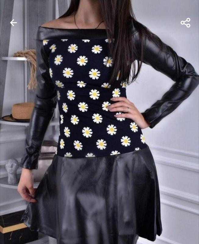 Платье женское🌿ДЕМИСЕЗОН🍁 Ткань: трикотаж+еко кожа Размер: М, L. 🌿Параметры модели: Рост-165 см П. Объем груди - 45 см П. Объем талии - 33 см П. Объем бедер - 48 см На модели размер М. 🌿Замеры: Размер : М, ширина плечей 41 п. обхват грудей 40 п. обхват талии верх 33,5 п. обхват стегон верх 53 длина рукава 55,5 длина изделия верх 88 Размер : L ширина плечей 43 п. обхват грудей 41 п. обхват талии верх 35 п. обхват стегон верх 70 длина рукава 56 длина изделия верх 89 Цвет: Синий, Черный