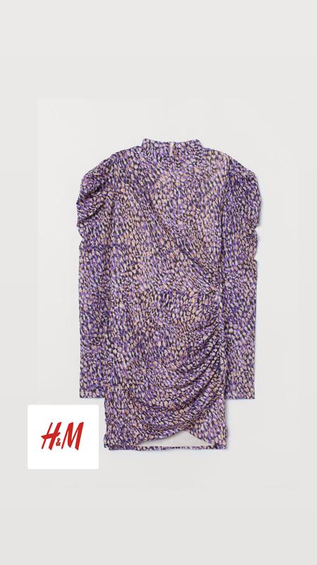 Коротка нова сукня з повітряного трикотажу з малюнком. Низький комір стійка та потаємна блискавка ззаду. Поличка з драпіруванням і зламаний шов ззаду на спідниці. Довгі пишні рукави з прилаштованим швом на плечі для додаткового об'єму. Підкладка трикотажна. Розмір L підійде і на М Заміри Довжинна по спині 94 Рукава 69 ПОГ 45 ПОТ 41 ПОБ 47 Тягнеться