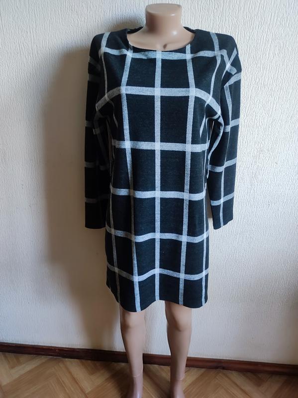 в цену входит оплата сайта. Новое,, дефектов нет, без ремешка. Цвет - как на фото, черно серый и белый. Модель - полного кроя. Ткань тканый трикотаж, теплый, не слишком толстый. Осень. размер указан 12/40/L подойдет на меньше смотрите по замерам Плечи спущенные 54 см пог 52...56см поб 54...60см длина рукава 52/69 см длина 84 см