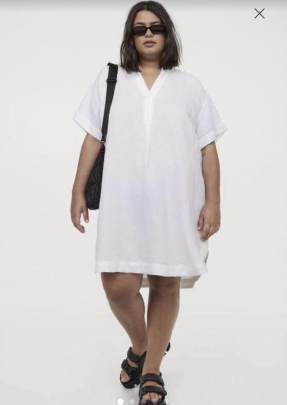 Короткое платье с небольшим воротником-стойкой и треугольным вырезом сверху. Заниженная линия плеч, короткие рукава с пришитыми отворотами и скругленный низ. Слегка удлиненная спинка. Без подкладки.пог75-80длина100
