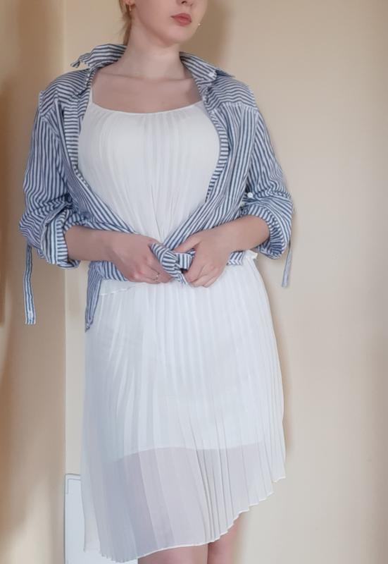 Сукня дуже легка,неначе повітряна. Можна комбінувати з різними аксесуарами, іншим верхнім одягом. Брительки регулюються, наявна підкладка (але краще одягати білизну тілесного/білого кольору).