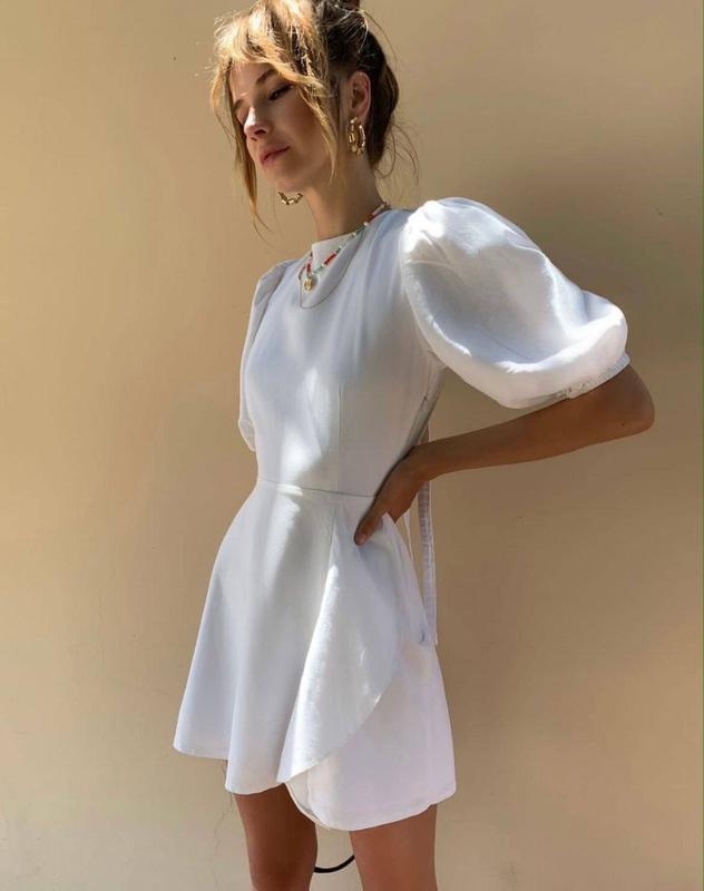 Легкое летнее платье с открытой спинкой и рукавами-буфами, размер s