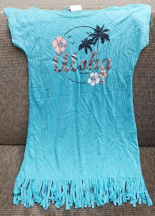 Новенькое, в меру прозрачное, пляжное платье. Длина 77 см, с рюшками - 85 см, ПОГ 43 см. Состав: полиэстер и хлопок. Все бирки на месте, ни разу не одевалось. Указан размер хс