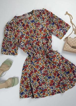 Яскрава сукня в квітковий принт. Резинка на талії, пишні рукава. Розмір Xs/S Пог 45 см Пот 40 см Довжина 87 см