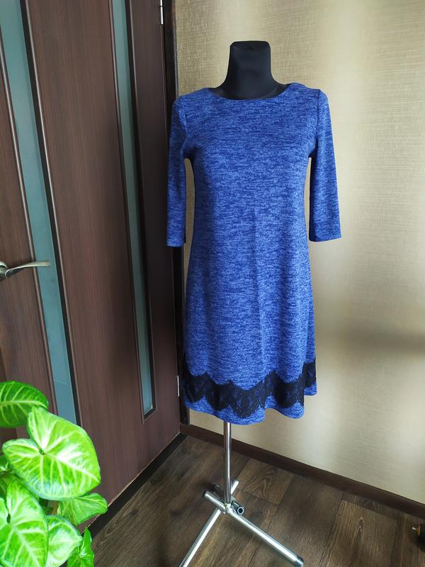 Платье с отделкой кружевом по низу ,рукав 3/4.