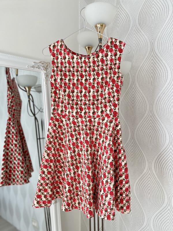 Платье в горошек из 95% хлопка, приобретенное в Италии. По размеру на девочку настройками XXS, XS Состав изделия: 95% котон 5% еластан Замеры изделия: Плечи 35см Груди 38см Талия 33см Длина 77см