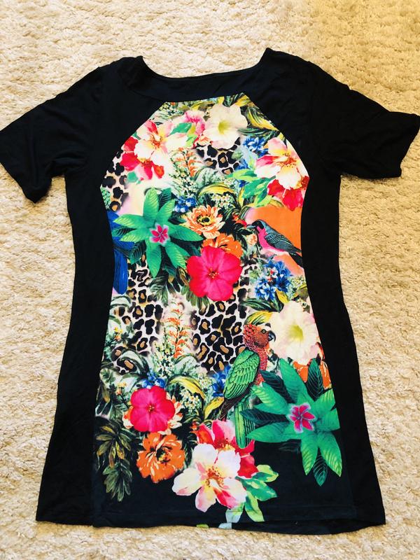 Летнее платье знаменитого немецкого бренда, цветочно-растительный рисунок в стиле Dolce &Gabbana, чудесный состав трикотаж, короткое, размер M,L( см замеры- тянется).Состояние отличное.Эффектное и стильное платье на лето!!!